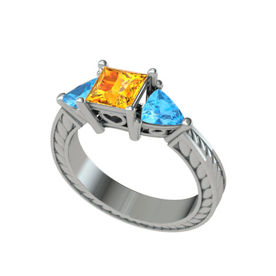 Sitrin ve akuamarin 8 ayar beyaz altın yüzük