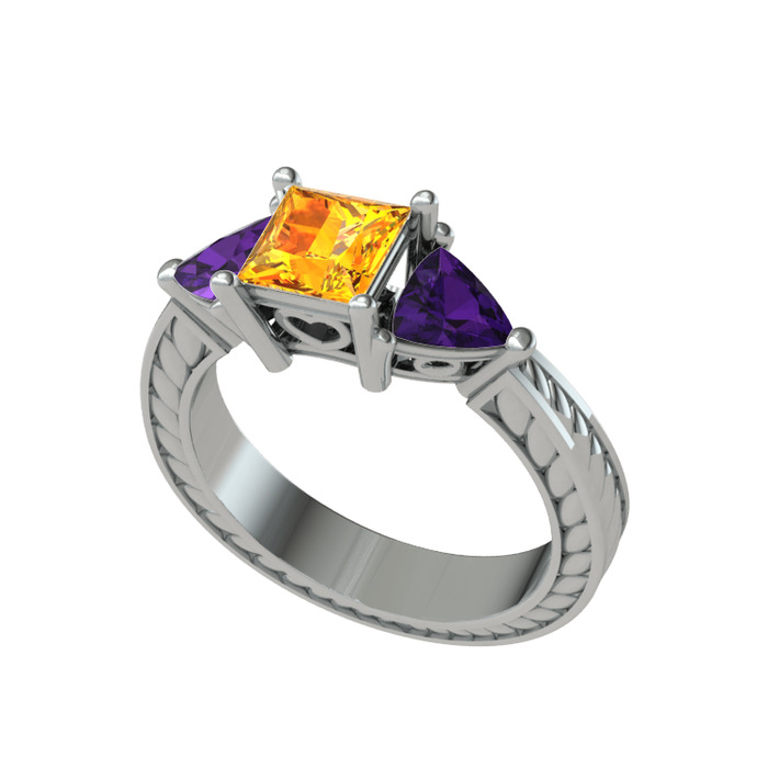 Sitrin ve ametist 925 ayar gümüş yüzük