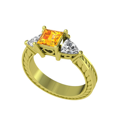 Sitrin ve beyaz zirkon 18 ayar altın yüzük