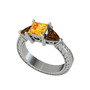 Sitrin ve dumanlı kuvars 8 ayar beyaz altın yüzük