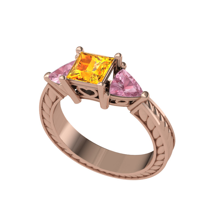 Sitrin ve pembe kuvars 18 ayar rose altın yüzük