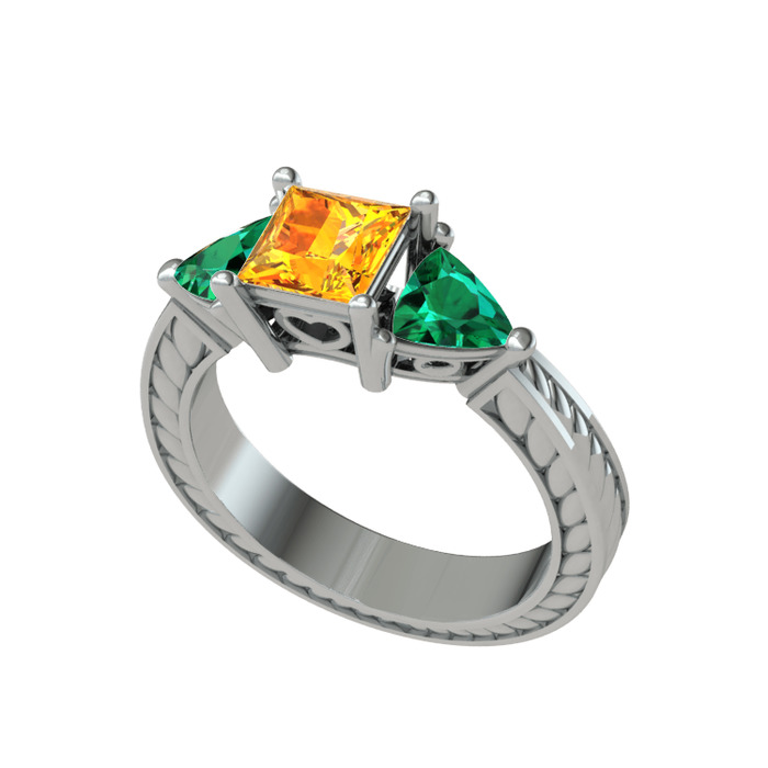 Sitrin ve yeşil kuvars 14 ayar beyaz altın yüzük