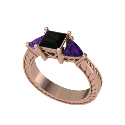 Siyah zirkon ve ametist 14 ayar rose altın yüzük