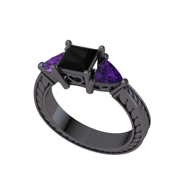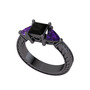 Siyah zirkon ve ametist 925 ayar siyah rodyum kaplama gümüş yüzük
