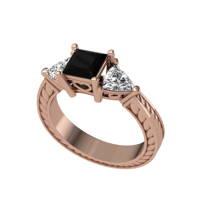 Siyah zirkon ve beyaz zirkon 14 ayar rose altın yüzük