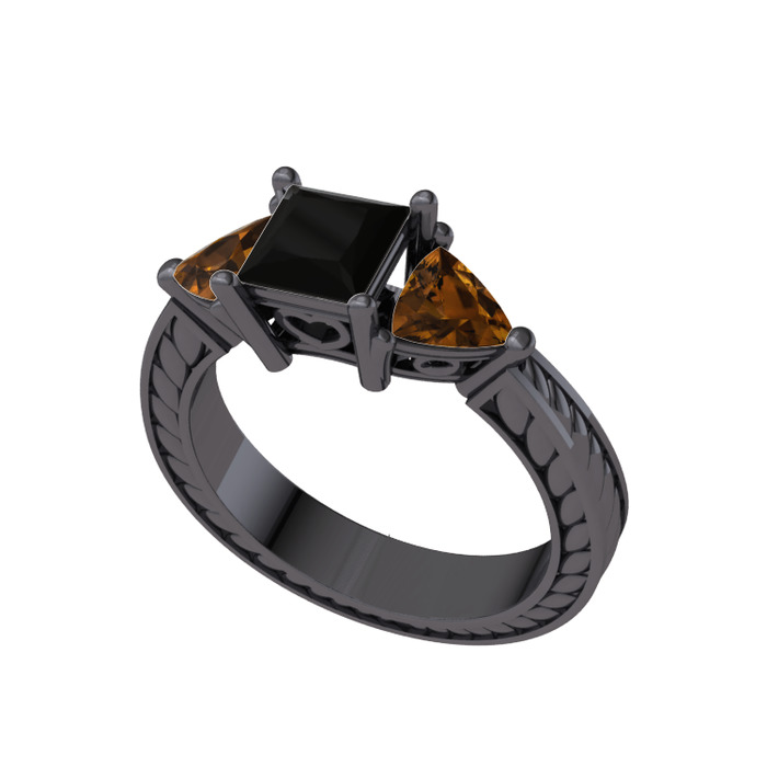 Siyah zirkon ve dumanlı kuvars 925 ayar siyah rodyum kaplama gümüş yüzük