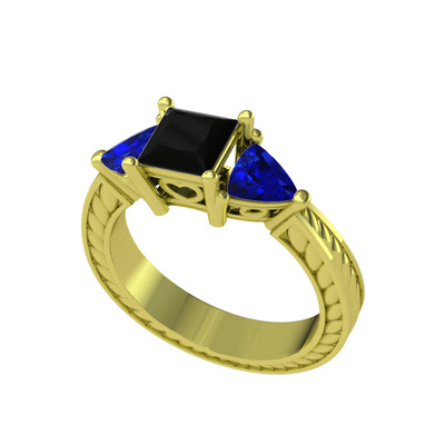 Siyah zirkon ve lab safir 14 ayar altın yüzük