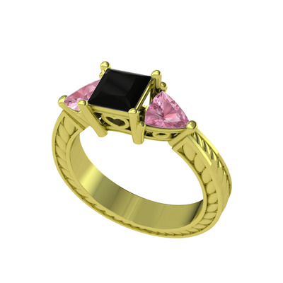 Siyah zirkon ve pembe kuvars 925 ayar altın kaplama gümüş yüzük