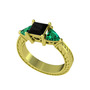 Siyah zirkon ve yeşil kuvars 14 ayar altın yüzük