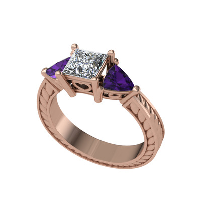 Swarovski ve ametist 18 ayar rose altın yüzük