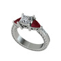 Swarovski ve kök yakut 14 ayar beyaz altın yüzük