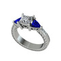 Swarovski ve lab safir 14 ayar beyaz altın yüzük