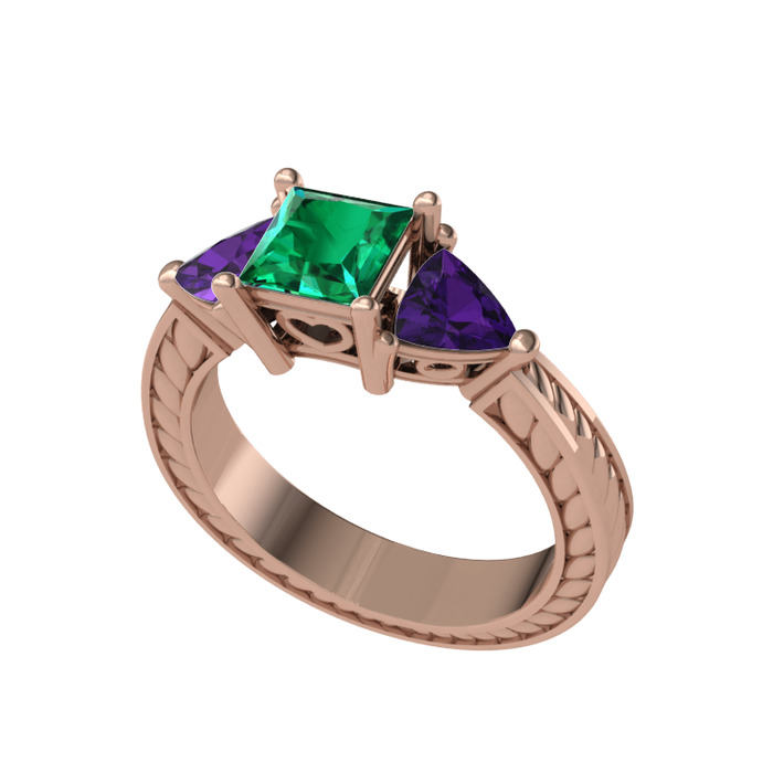 Yeşil kuvars ve ametist 14 ayar rose altın yüzük