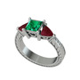 Yeşil kuvars ve kök yakut 8 ayar beyaz altın yüzük