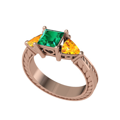 Yeşil kuvars ve sitrin 14 ayar rose altın yüzük