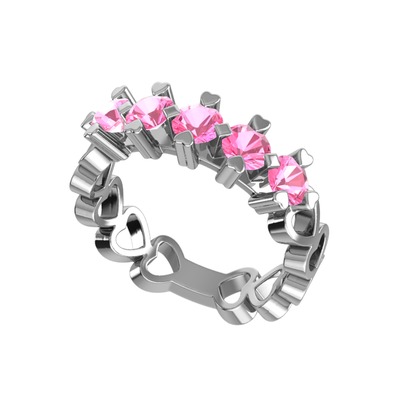 Pembe kuvars 14 ayar beyaz altın yüzük