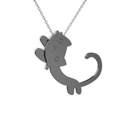 925 ayar siyah rodyum kaplama gümüş kolye (40 cm beyaz altın rolo zincir)