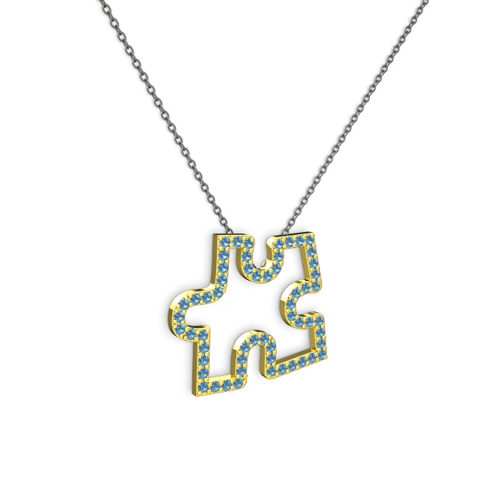 Akuamarin 925 ayar altın kaplama gümüş kolye (40 cm gümüş rolo zincir)