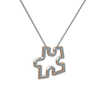 Akuamarin 925 ayar rose altın kaplama gümüş kolye (40 cm gümüş rolo zincir)