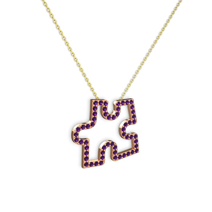 Ametist 14 ayar rose altın kolye (40 cm altın rolo zincir)
