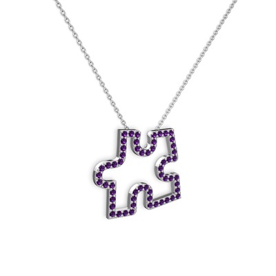 Ametist 18 ayar beyaz altın kolye (40 cm gümüş rolo zincir)