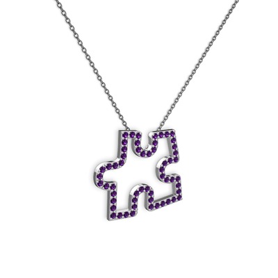 Ametist 18 ayar beyaz altın kolye (40 cm gümüş rolo zincir)