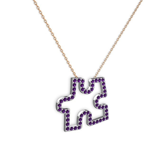 Ametist 18 ayar beyaz altın kolye (40 cm rose altın rolo zincir)