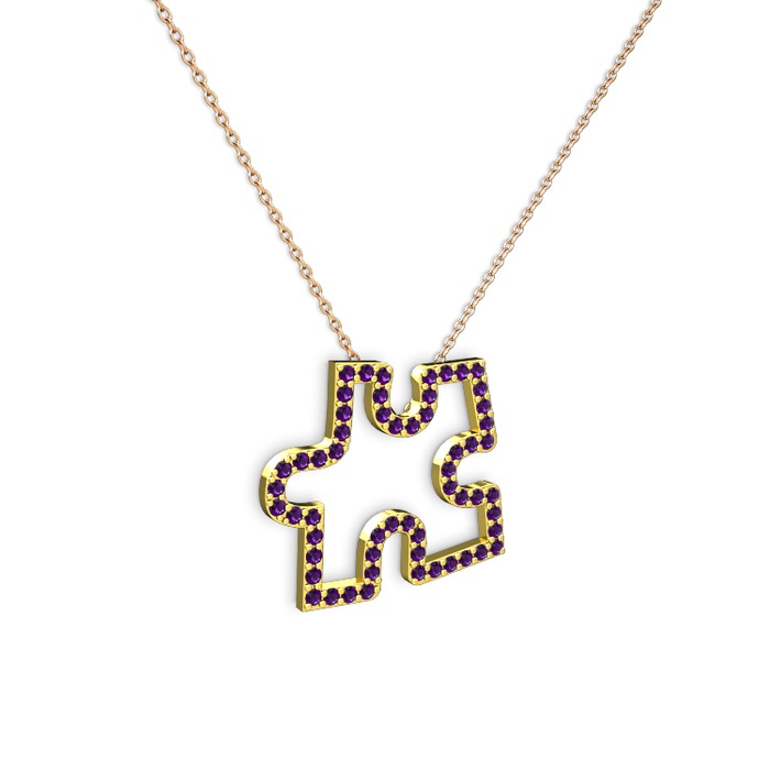 Ametist 925 ayar altın kaplama gümüş kolye (40 cm gümüş rolo zincir)