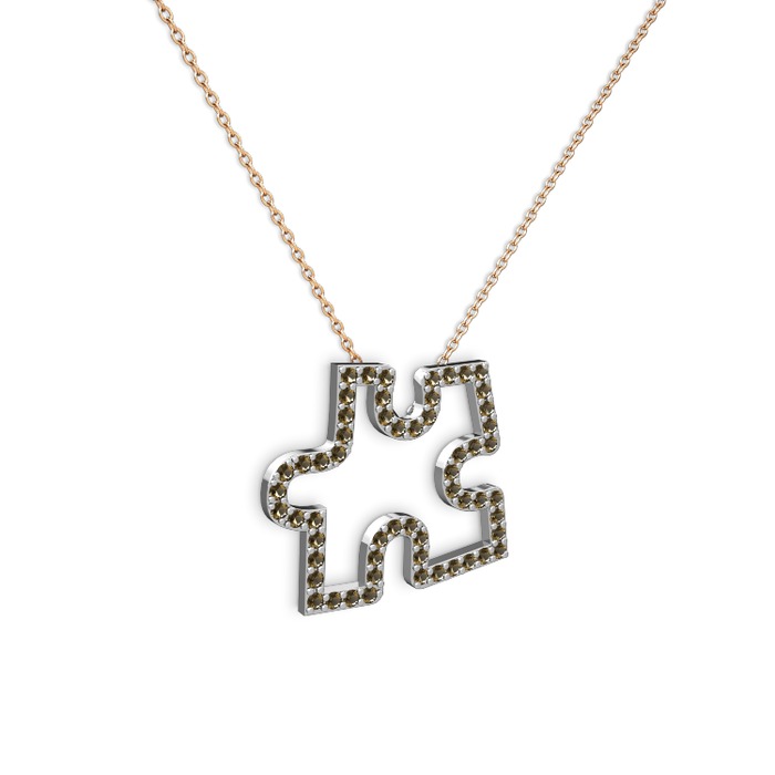 Dumanlı kuvars 18 ayar beyaz altın kolye (40 cm rose altın rolo zincir)