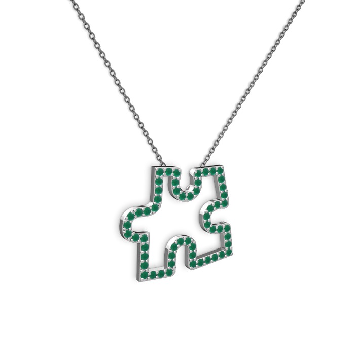 Kök zümrüt 18 ayar beyaz altın kolye (40 cm gümüş rolo zincir)