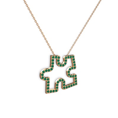 Kök zümrüt 8 ayar rose altın kolye (40 cm gümüş rolo zincir)