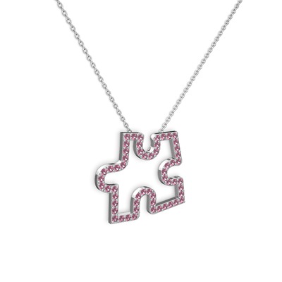 Pembe kuvars 18 ayar beyaz altın kolye (40 cm beyaz altın rolo zincir)