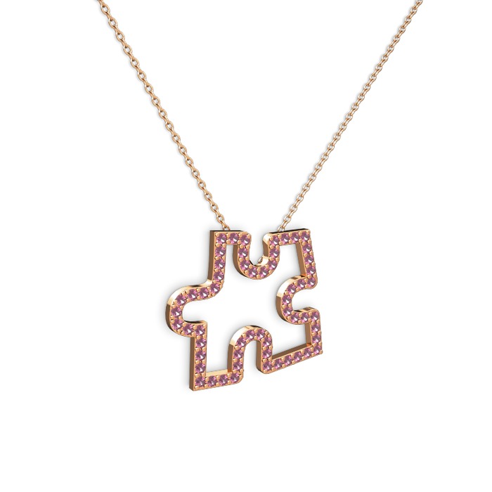 Pembe kuvars 18 ayar rose altın kolye (40 cm gümüş rolo zincir)