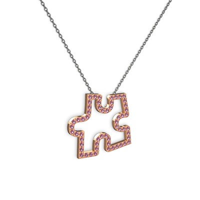Pembe kuvars 18 ayar rose altın kolye (40 cm gümüş rolo zincir)