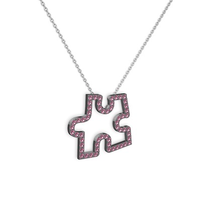 Pembe kuvars 925 ayar siyah rodyum kaplama gümüş kolye (40 cm beyaz altın rolo zincir)