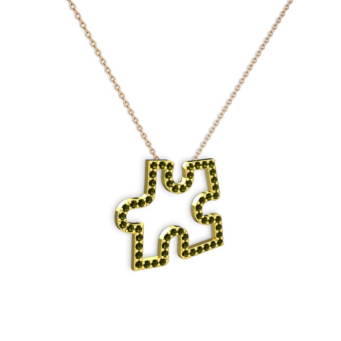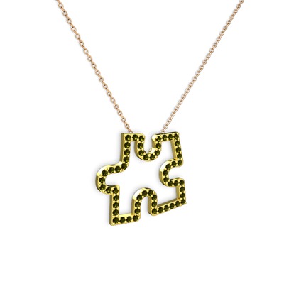 Peridot 925 ayar altın kaplama gümüş kolye (40 cm rose altın rolo zincir)