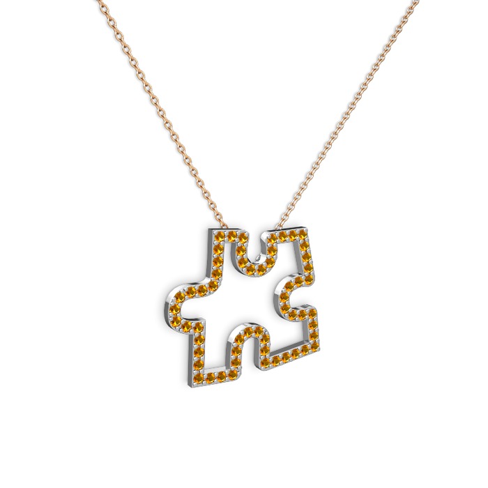 Sitrin 18 ayar beyaz altın kolye (40 cm rose altın rolo zincir)