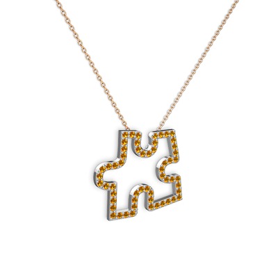 Sitrin 8 ayar beyaz altın kolye (40 cm rose altın rolo zincir)