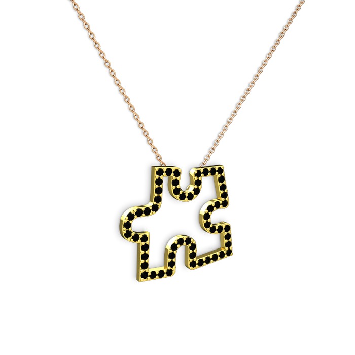 Siyah zirkon 18 ayar altın kolye (40 cm rose altın rolo zincir)