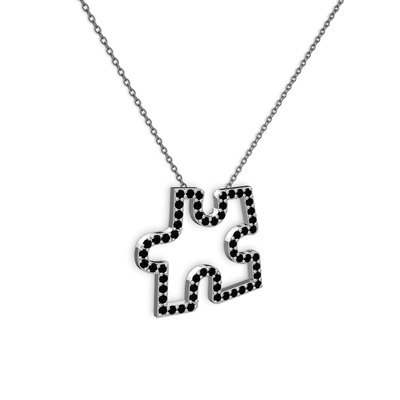 Siyah zirkon 8 ayar beyaz altın kolye (40 cm gümüş rolo zincir)