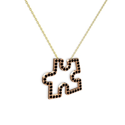 Siyah zirkon 8 ayar rose altın kolye (40 cm altın rolo zincir)