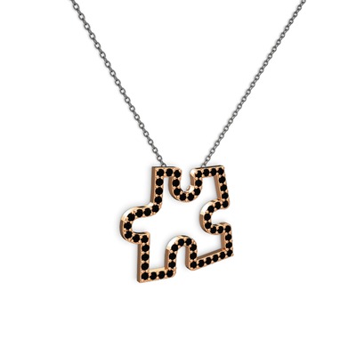 Siyah zirkon 8 ayar rose altın kolye (40 cm gümüş rolo zincir)
