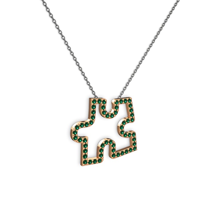 Yeşil kuvars 18 ayar rose altın kolye (40 cm gümüş rolo zincir)