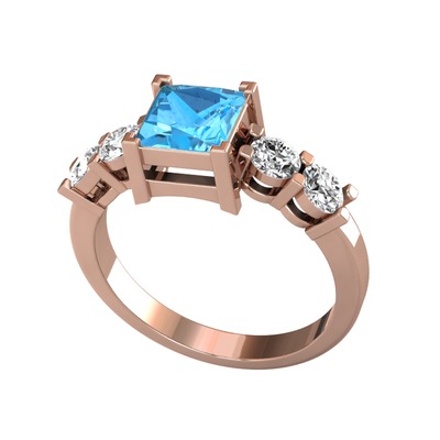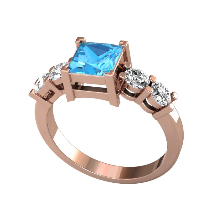 Akuamarin ve beyaz zirkon 8 ayar rose altın yüzük