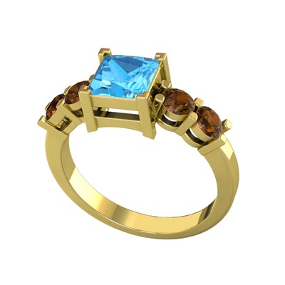 Akuamarin ve dumanlı kuvars 8 ayar altın yüzük