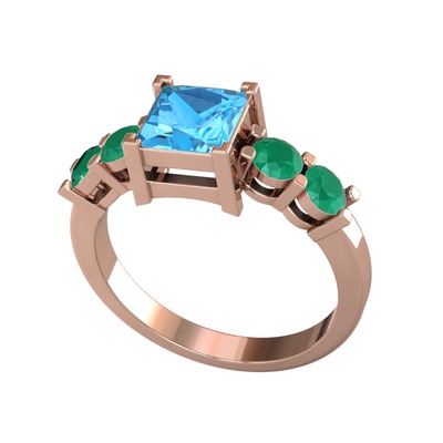 Akuamarin ve kök zümrüt 18 ayar rose altın yüzük