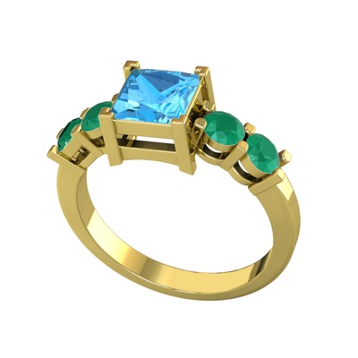 Akuamarin ve kök zümrüt 8 ayar altın yüzük
