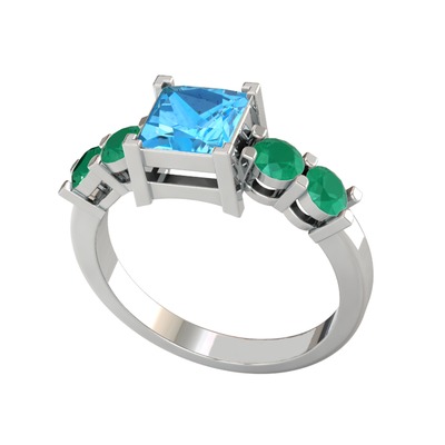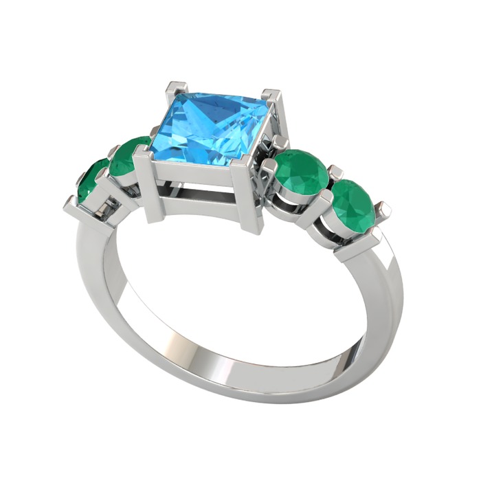 Akuamarin ve kök zümrüt 925 ayar gümüş yüzük