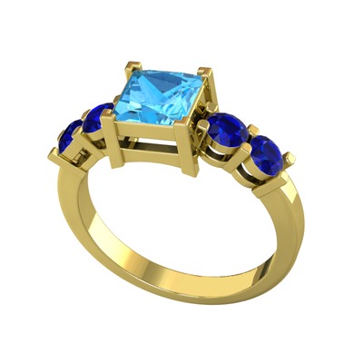 Akuamarin ve lab safir 925 ayar altın kaplama gümüş yüzük