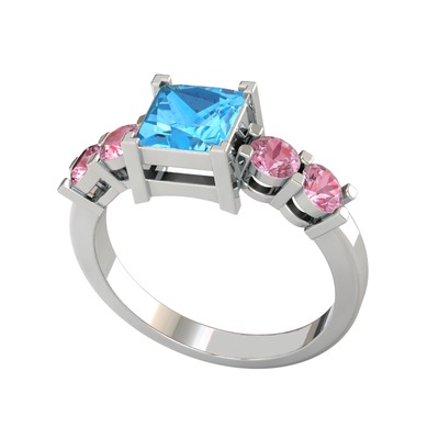 Akuamarin ve pembe kuvars 18 ayar beyaz altın yüzük
